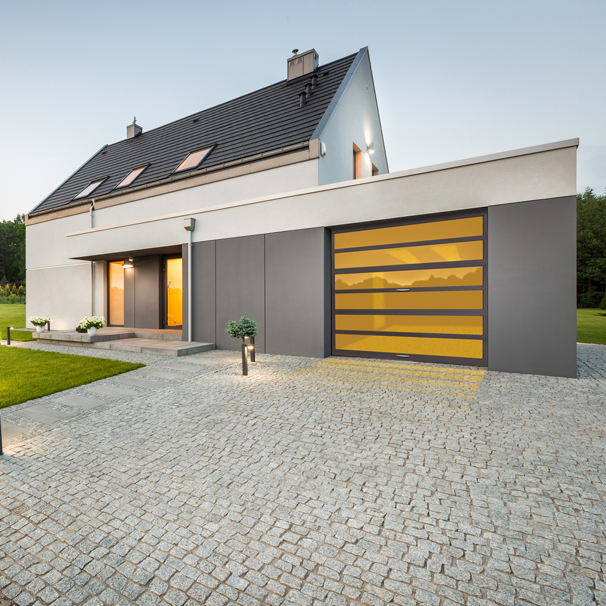 Our contemporary glass garage doors are sleek, with an aluminum frame structural support, and are customizable to your home. A glass garage door can be created in various glass panel configurations.