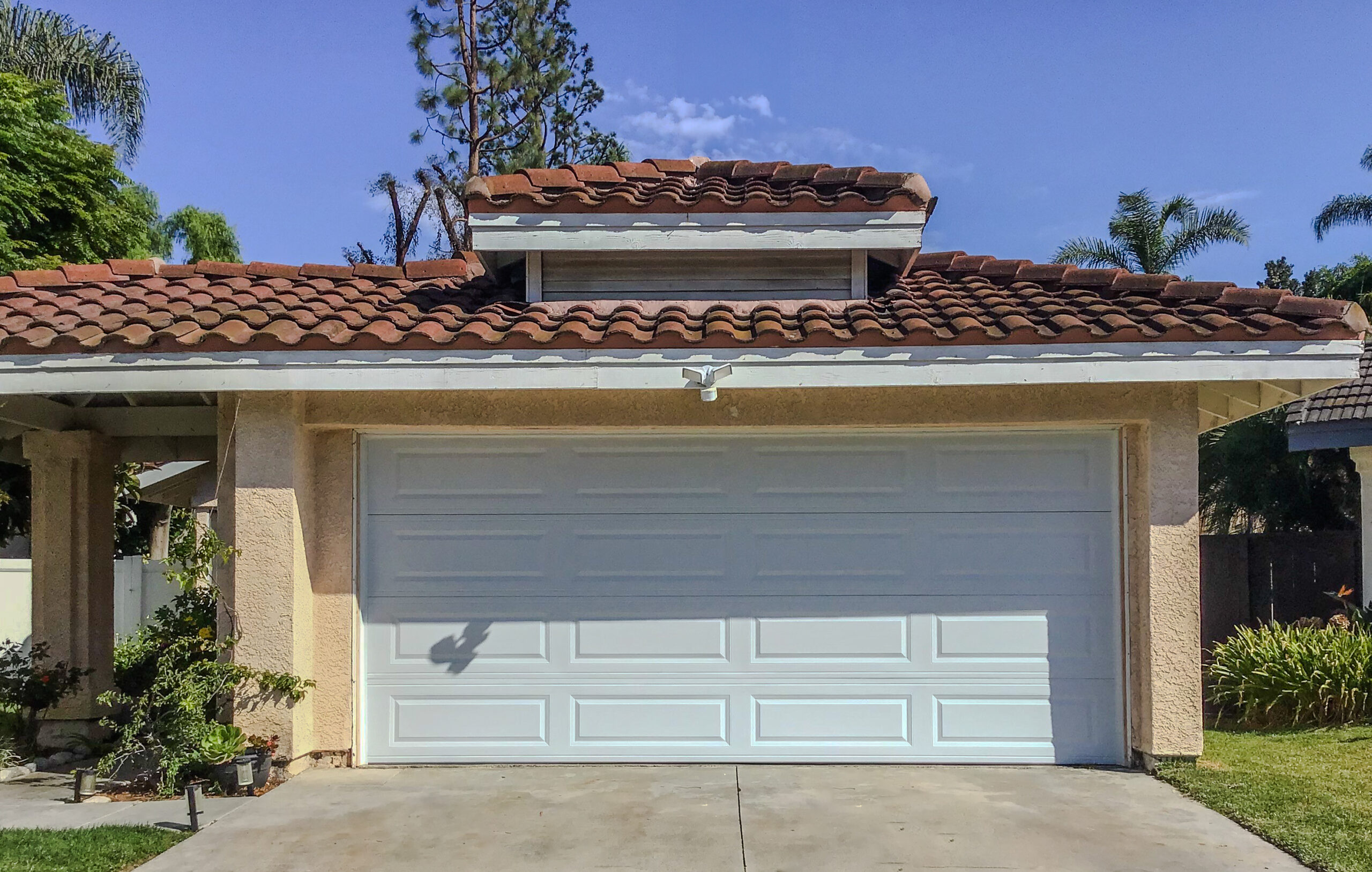 White Steel Garage Door Replacement in Laguna Niguel | CHI Model 4250 This install features a CHI 4250 White Steel Garage Door in the long panel design with no windows. Case study →